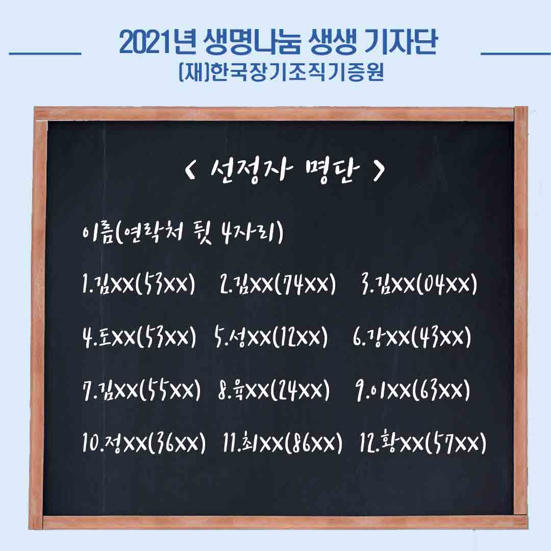 2021년 생명나눔 생생 기자단 선정자 발표