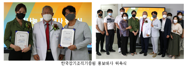 두 명의 홍보대사에게 위촉장을 전달하면서 한국장기조직기증원 문인성 원장은 “우리나라에 매일 장기이식을 받으면 살 수 있는 분이 6.8명이 돌아가시고 1년에 약 2천 5백명이 안타까운 죽음을 맞이하신다. 우리는 한 분이라도 더 살리기 위해 노력하는 있으며, 오늘 위촉된 홍보대사의 역할이 중요하다고 생각한다. 생명나눔 활동에 동참해준 이 아름다운 마음씨가 종소리가 널리 울려퍼지듯 사회 곳곳에 희망을 전달하길 바란다.”며 감사와 부탁의 말을 전했다.